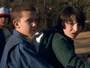At schoolhouse, Dustin and Lucas outset to brand fun of Mike because they believe he is starting to accept a crush on Eleven. As they continue to make fun of him, Troy Walsh and James Dante come of to them and showtime making fun of Will, which results in Mike getting a scar on his chin. When they all go to meet Xi again, she questions why Mike has a scar on his mentum. At first he just says that its non a big deal but then soon tells her what happened and calls Troy and James "mouthbreathers" which throughout the residual of the episode she refers to them equally that. Mike tells her that he didn't want to tell her because he was afraid she would call back of him every bit weak. She tells him that she understands and gives him a small smile. He gets a little shocked since this is the showtime time he's seen her smiling but he smiles back.
